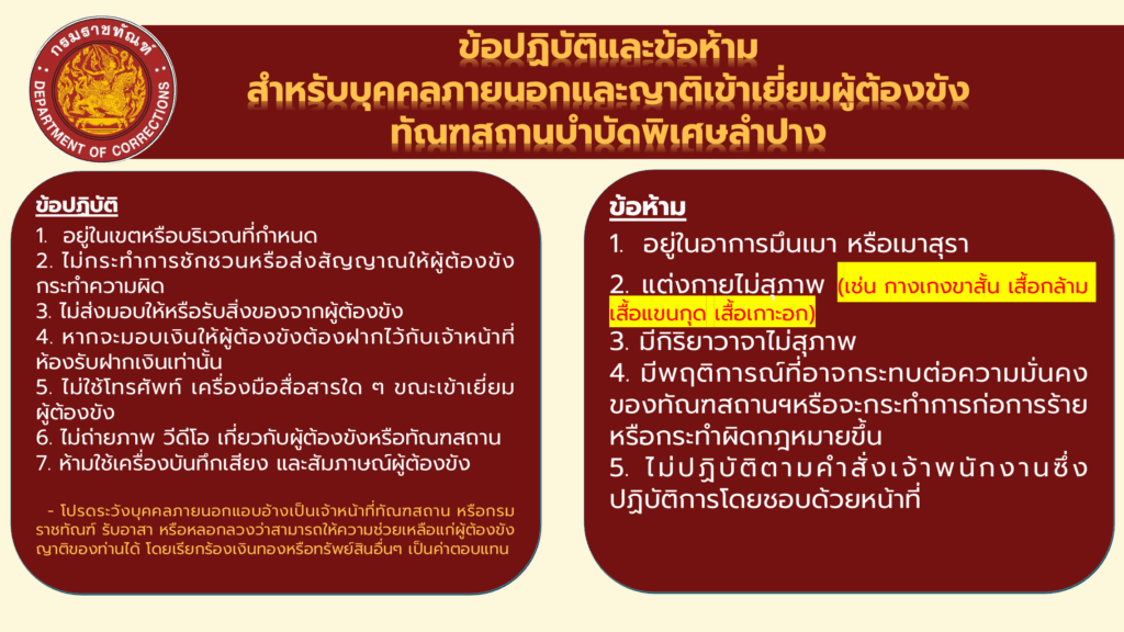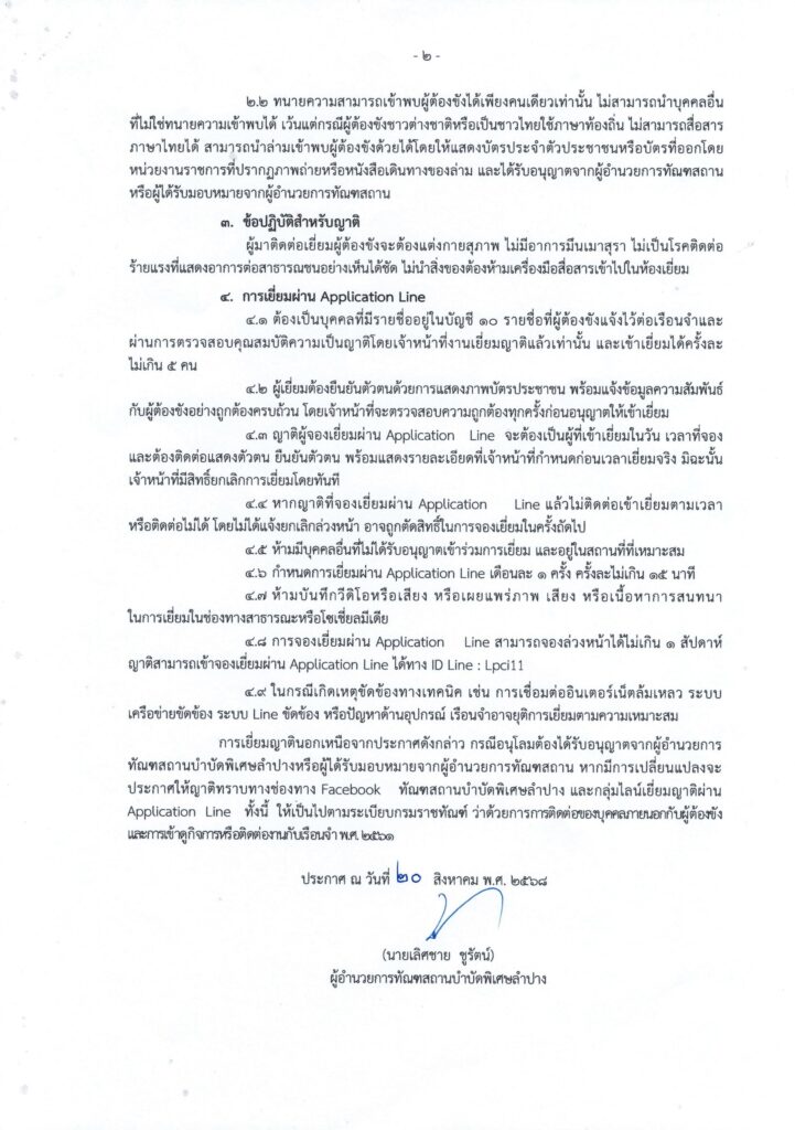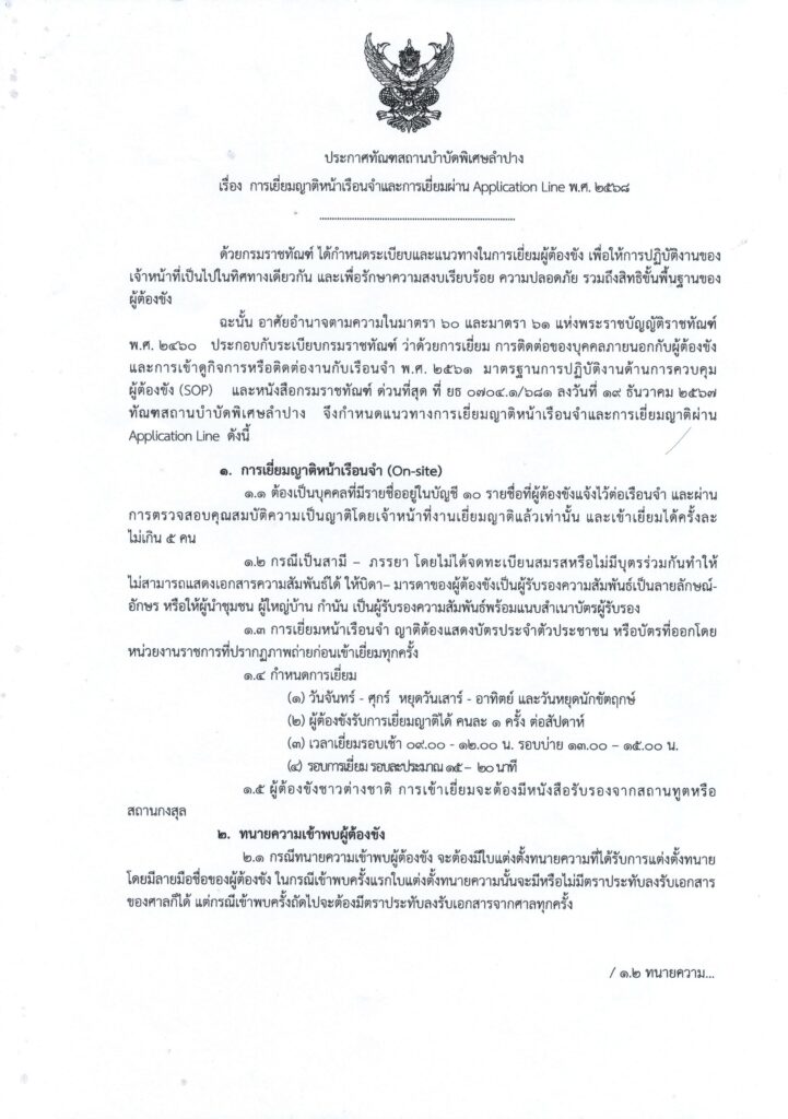 การเยี่ยมญาติหน้าเรือนจำและการเยี่ยมผ่าน Application Line